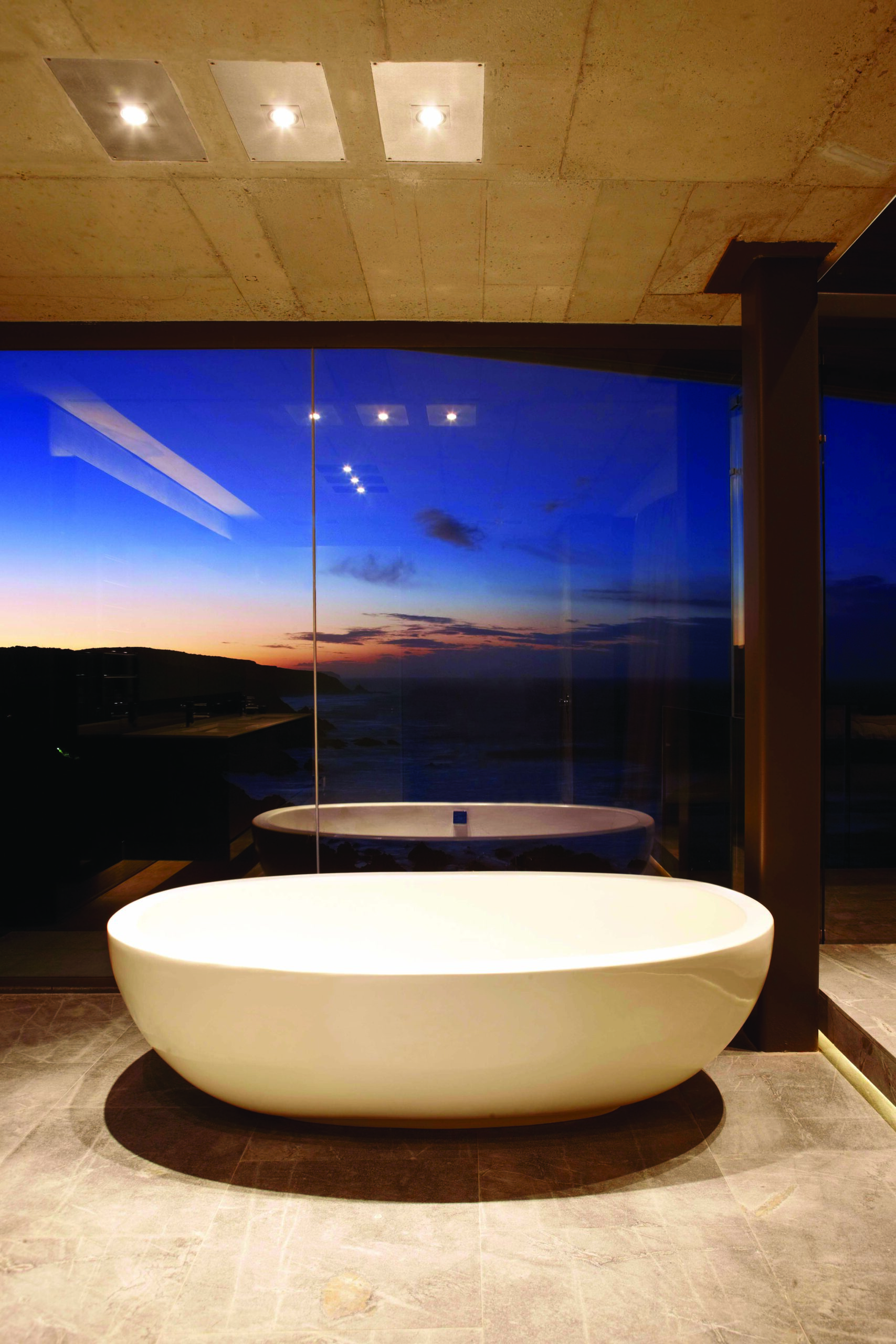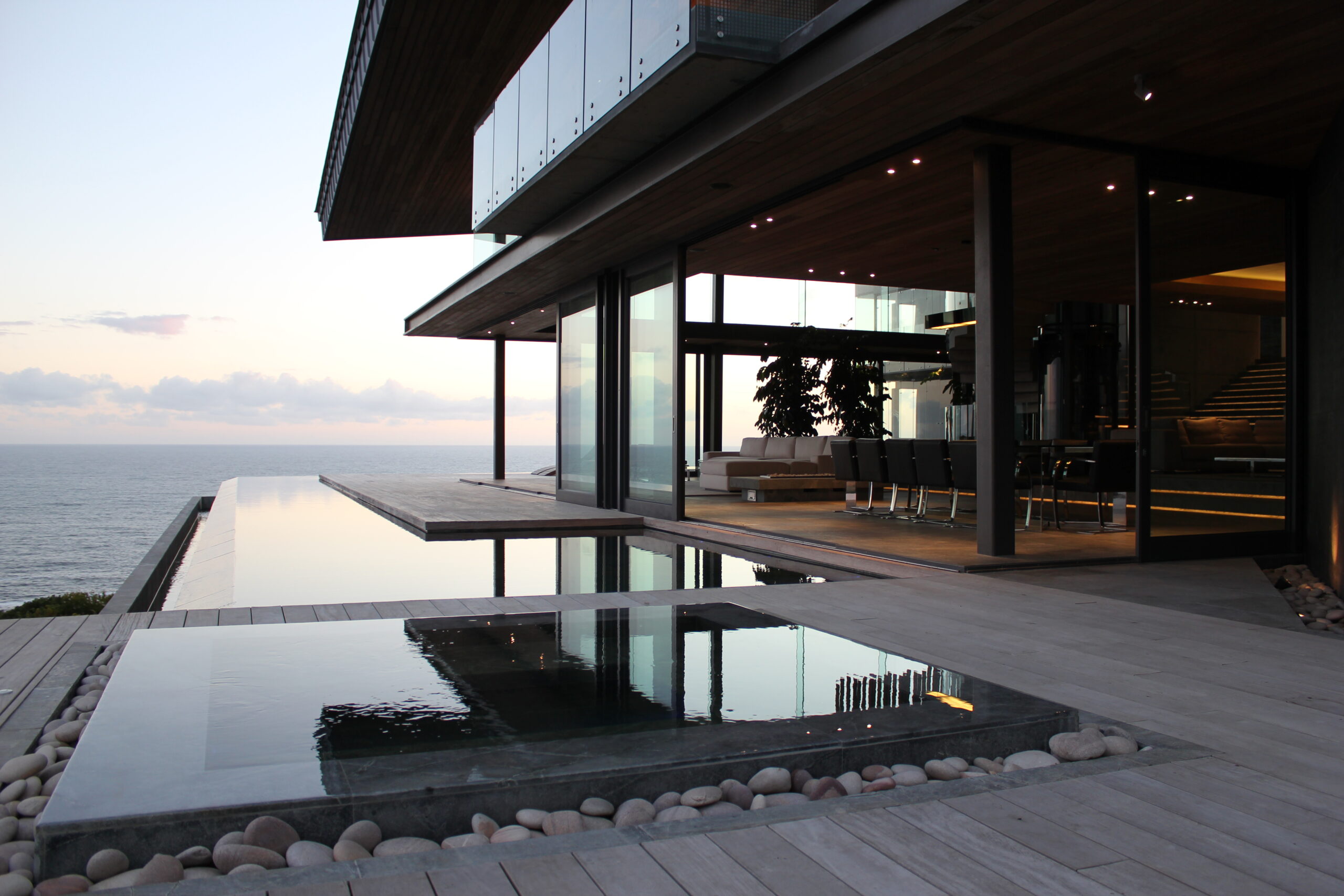 This magnificent home’s open plan lounge, kitchen and dining area flows onto an entertainment deck with a swimming pool and Jacuzzi which overlooks views of the Indian Ocean as far as the eye can see. The 4 double bedrooms (each with en-suite bathroom) are individual suites with seamless fold away glass doors affording each unit an exquisite view. Each has it’s it’s own television independent of the main lounge. Glass elevator, surround sound, bar, guest shower and more – all the bells and whistles. The large pool deck boasts a gas braai and Weber with covered entertainment area.  Ideal for the discerning traveller or golf group.  Andile is on hand for your assistance on request.