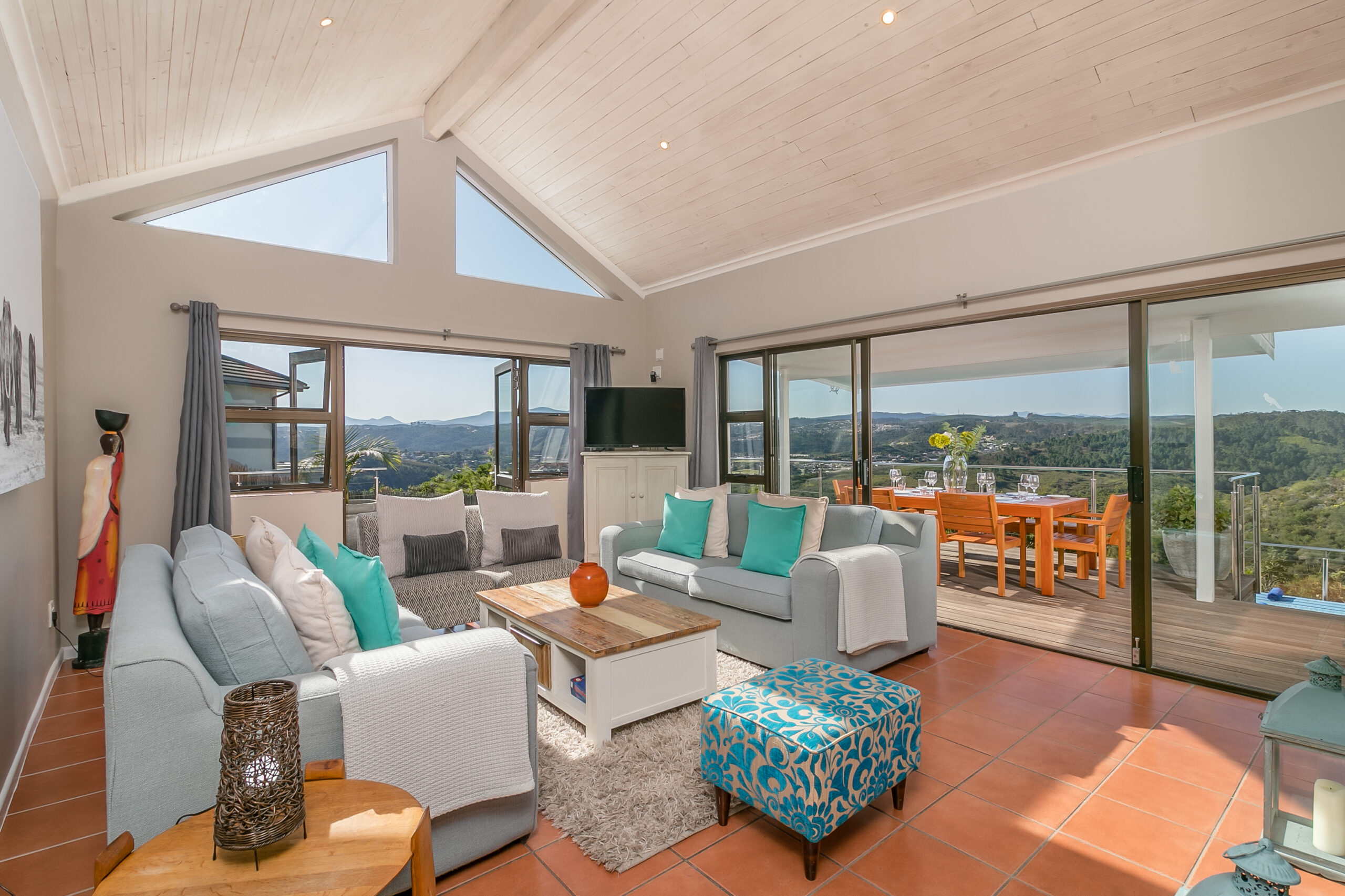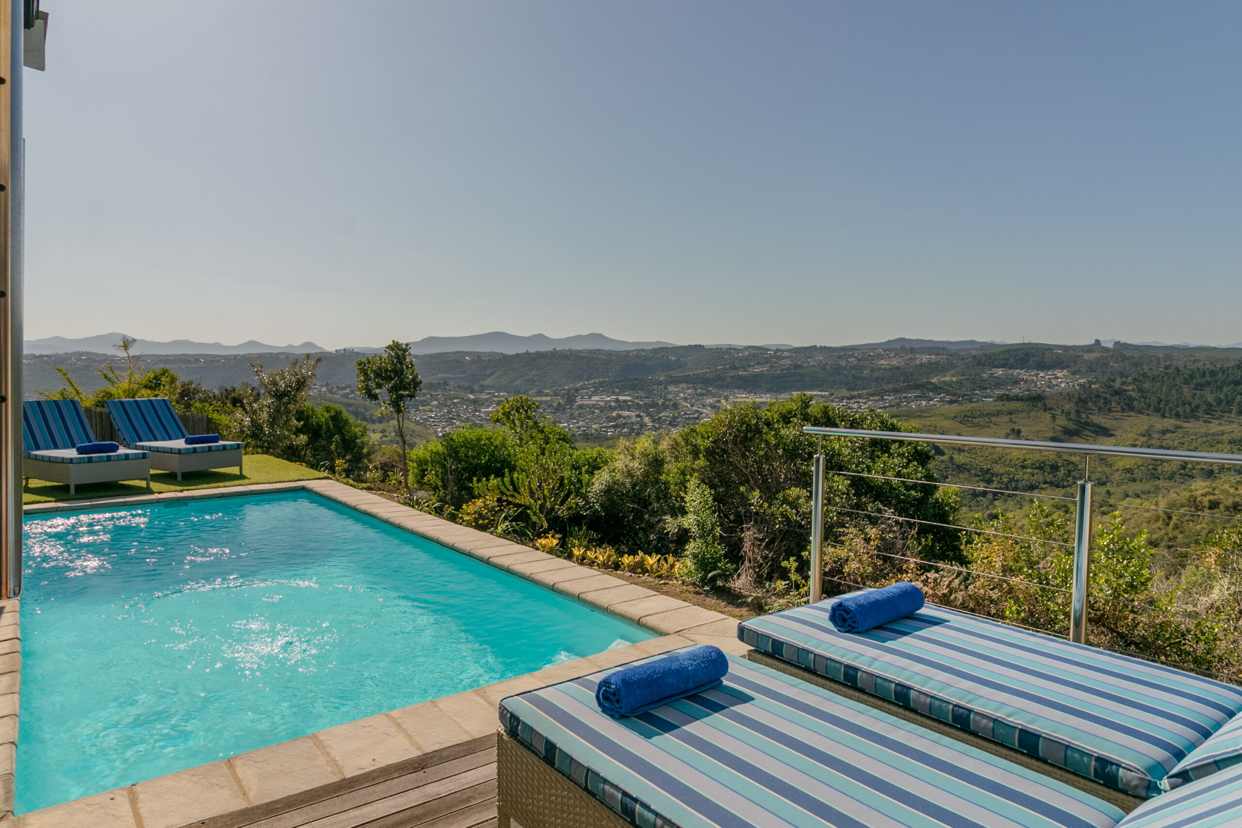 “entertainment deck with a swimming pool which overlooks views of the Knysna Lagoon and Outeniqua Mountains”
