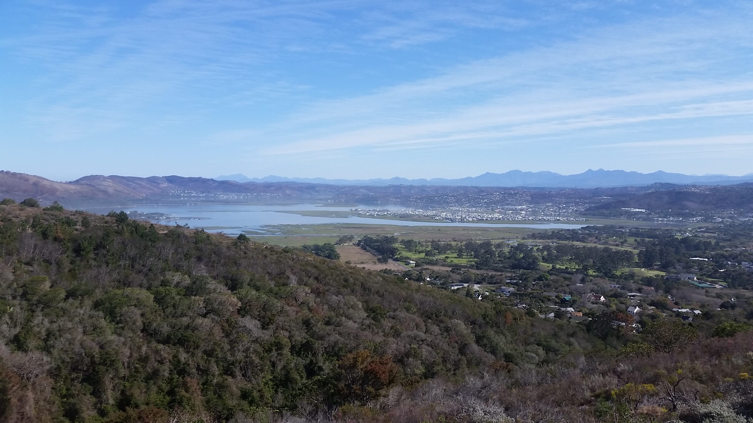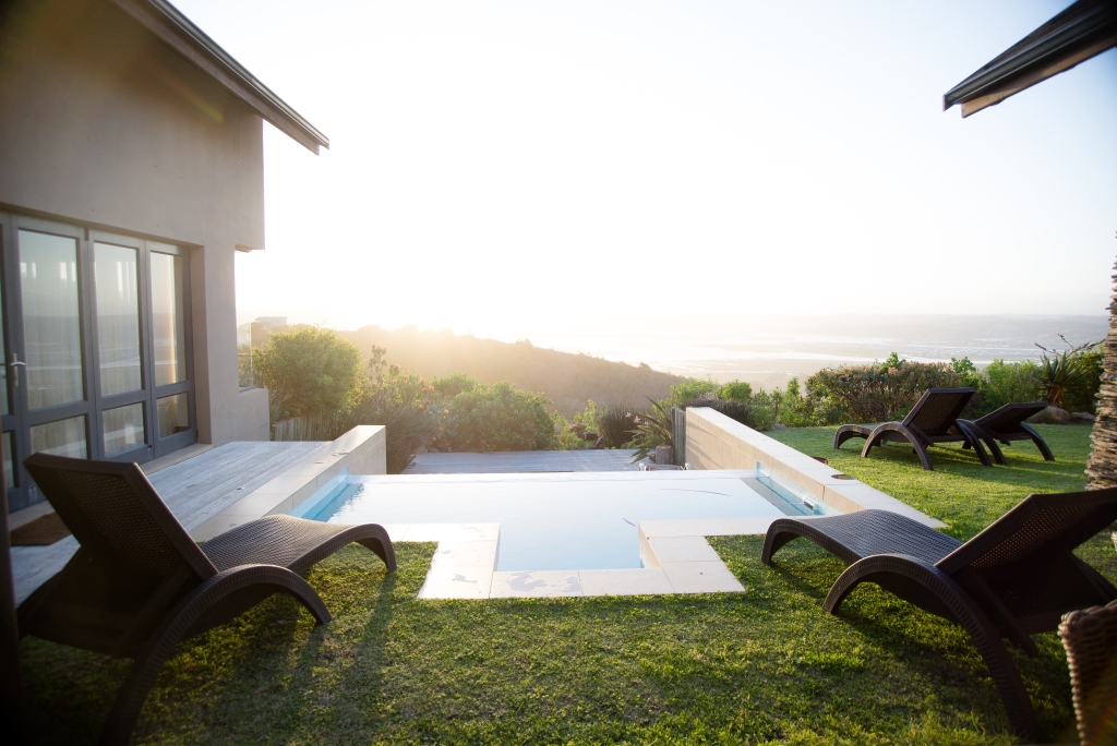 “entertainment deck with a swimming pool which overlooks views of the Knysna Lagoon and Outeniqua Mountains”